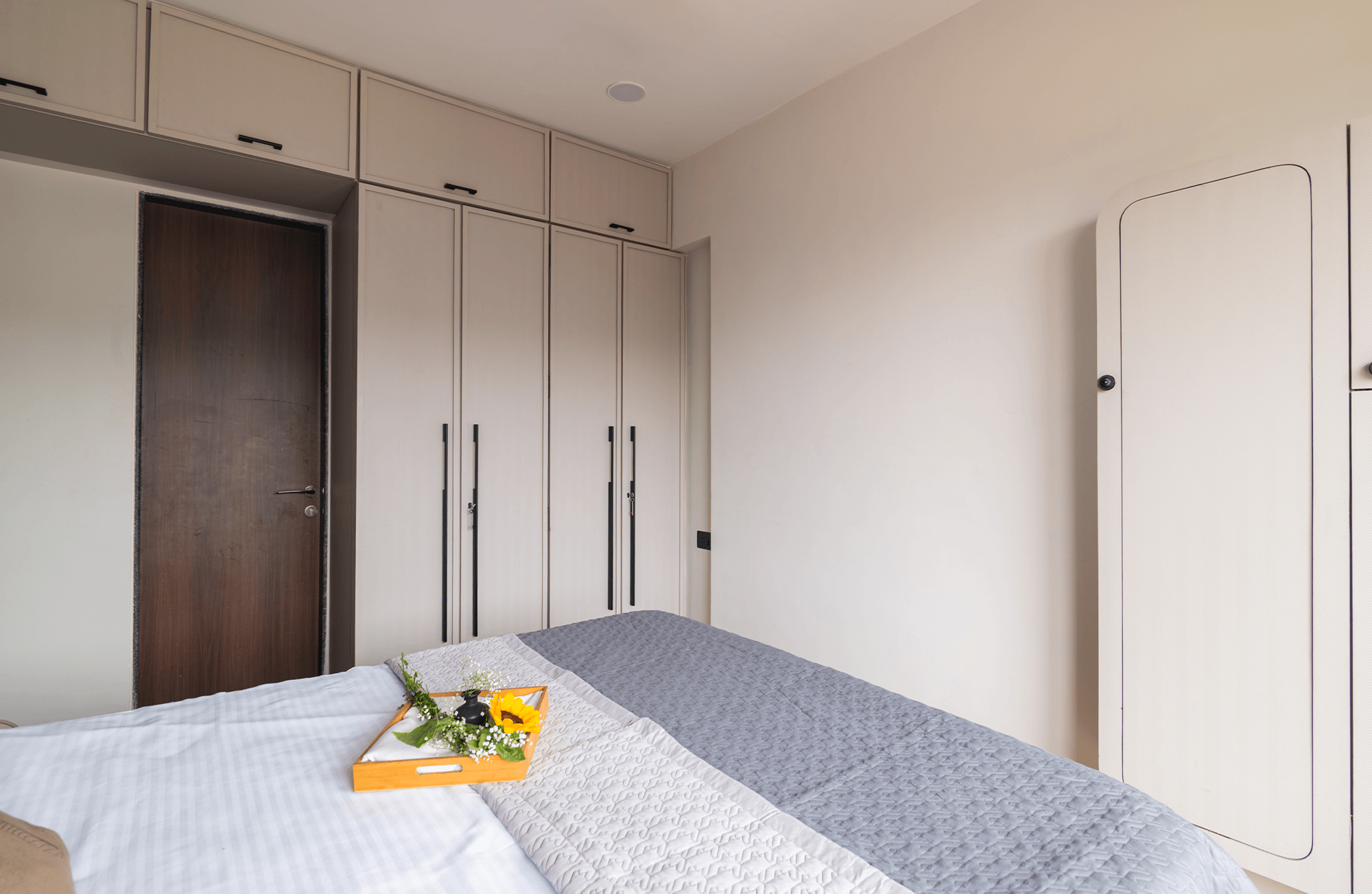 The Mr. Dilip Mehta Residence reflects a contemporary approach to home interiors, where functionality meets understated elegance. From the living room to the bedrooms and kitchen, each space was designed with clean detailing, durable materials, and a focus on everyday comfort.